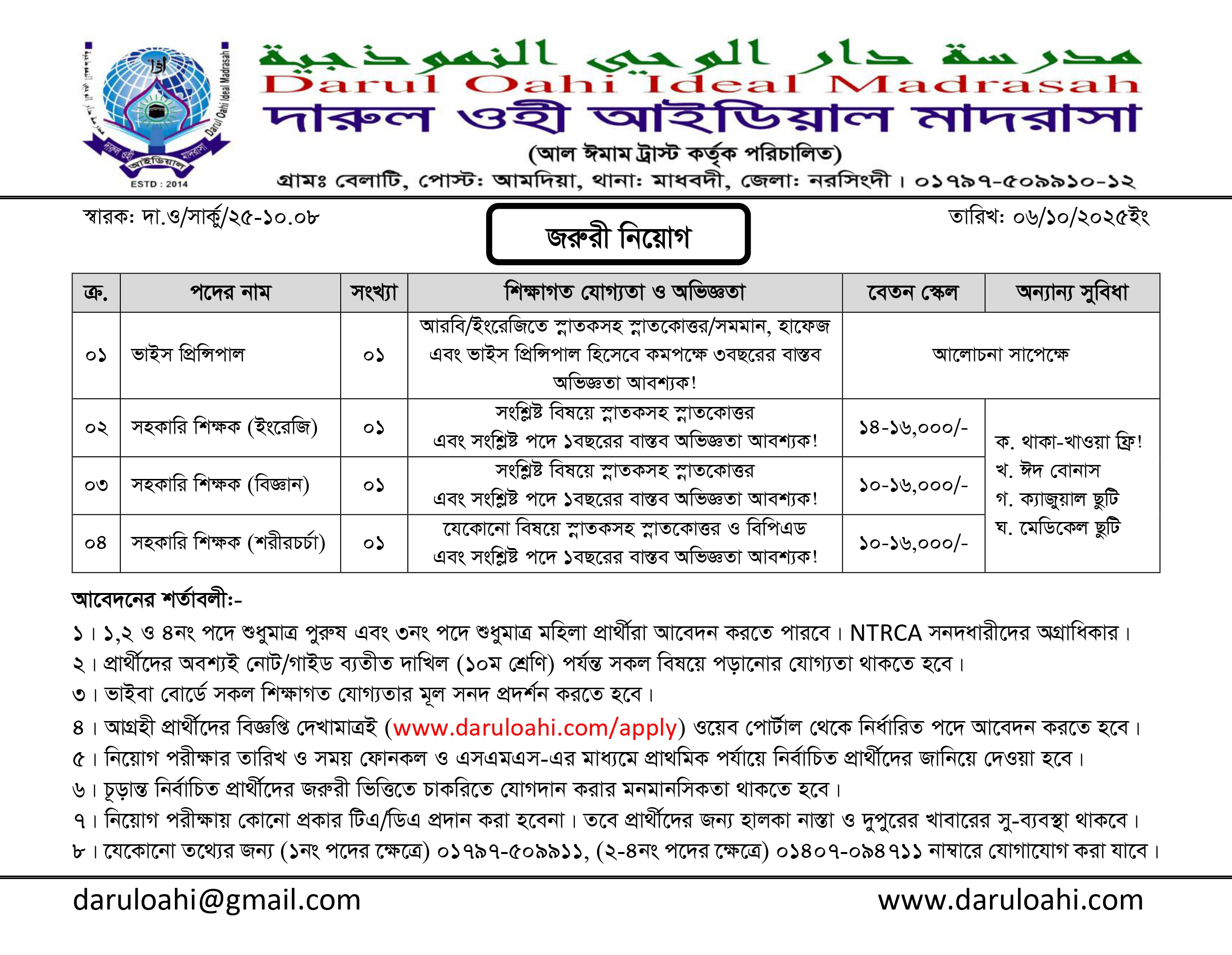 ভাইস প্রিন্সিপাল, সহকারি শিক্ষক (ইংরেজি, বিজ্ঞান ও শরীরচর্চা) পদে নিয়োগ বিজ্ঞপ্তি